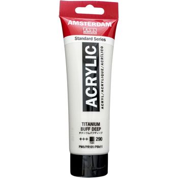 Blank page Ακρυλικό χρώμα Titanium Buff Deep 290 της σειράς Amsterdam All Acrylics Standard Series σε συσκευασία των 120ml. Τα χρώματα Amsterdam Standard Series είναι εξαιρετικής ποιότητας ακρυλικά χρώματα με την εγγύηση της Ολλανδικής Royal Talens. Φτιαγμένα με υψηλής ποιότητας, ανθεκτικές στο φως χρωστικές, εχουν βαθμολογία αντοχής στο φως +++ (100+ χρόνια υπό συνθήκες μουσείου). Η σειρά Standard σας προσφέρει μία ευρεία γκάμα από εξαιρετικά ζωντανά αδιαφανή ακρυλικά χρώματα, εύκολα στη χρήση, τα οποία προσφέρουν ομαλή εφαρμογή. Χρησιμοποιήστε το χρώμα απευθείας από το σωλήνα ή αραιωμένο με λίγο νερό ή ένα από τα διαλυτικά για ακρυλικά χρώματα. Είναι κατασκευασμένα με 100% συνδετικό ακρυλικής ρητίνης, με αποτέλεσμα μια εξαιρετικά ανθεκτική και εύκαμπτη μεμβράνη βαφής με ομοιόμορφο βαθμό γυαλάδας. Άοσμη φόρμουλα με βάση το νερό η οποία γίνεται αδιάβροχη και με μέγάλη αντοχή όταν στεγνώσει. Προσκολλάται σχεδόν σε οποιαδήποτε ελαφρώς πορώδη επιφάνεια, συμπεριλαμβανομένου καμβά, χαρτιού, χαρτονιού, ξύλου, πέτρας και τσιμέντου.