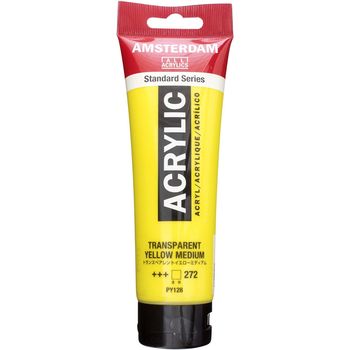 Blank page Ακρυλικό χρώμα Transparent Yellow Medium 272 της σειράς Amsterdam All Acrylics Standard Series σε συσκευασία των 120ml. Τα χρώματα Amsterdam Standard Series είναι εξαιρετικής ποιότητας ακρυλικά χρώματα με την εγγύηση της Ολλανδικής Royal Talens. Φτιαγμένα με υψηλής ποιότητας, ανθεκτικές στο φως χρωστικές, εχουν βαθμολογία αντοχής στο φως +++ (100+ χρόνια υπό συνθήκες μουσείου). Η σειρά Standard σας προσφέρει μία ευρεία γκάμα από εξαιρετικά ζωντανά αδιαφανή ακρυλικά χρώματα, εύκολα στη χρήση, τα οποία προσφέρουν ομαλή εφαρμογή. Χρησιμοποιήστε το χρώμα απευθείας από το σωλήνα ή αραιωμένο με λίγο νερό ή ένα από τα διαλυτικά για ακρυλικά χρώματα. Είναι κατασκευασμένα με 100% συνδετικό ακρυλικής ρητίνης, με αποτέλεσμα μια εξαιρετικά ανθεκτική και εύκαμπτη μεμβράνη βαφής με ομοιόμορφο βαθμό γυαλάδας. Άοσμη φόρμουλα με βάση το νερό η οποία γίνεται αδιάβροχη και με μέγάλη αντοχή όταν στεγνώσει. Προσκολλάται σχεδόν σε οποιαδήποτε ελαφρώς πορώδη επιφάνεια, συμπεριλαμβανομένου καμβά, χαρτιού, χαρτονιού, ξύλου, πέτρας και τσιμέντου.