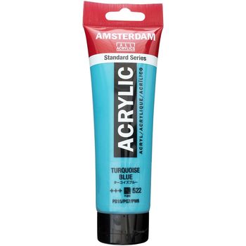 Blank page Ακρυλικό χρώμα Turquoise Blue 522 της σειράς Amsterdam All Acrylics Standard Series σε συσκευασία των 120ml. Τα χρώματα Amsterdam Standard Series είναι εξαιρετικής ποιότητας ακρυλικά χρώματα με την εγγύηση της Ολλανδικής Royal Talens. Φτιαγμένα με υψηλής ποιότητας, ανθεκτικές στο φως χρωστικές, εχουν βαθμολογία αντοχής στο φως +++ (100+ χρόνια υπό συνθήκες μουσείου). Η σειρά Standard σας προσφέρει μία ευρεία γκάμα από εξαιρετικά ζωντανά αδιαφανή ακρυλικά χρώματα, εύκολα στη χρήση, τα οποία προσφέρουν ομαλή εφαρμογή. Χρησιμοποιήστε το χρώμα απευθείας από το σωλήνα ή αραιωμένο με λίγο νερό ή ένα από τα διαλυτικά για ακρυλικά χρώματα. Είναι κατασκευασμένα με 100% συνδετικό ακρυλικής ρητίνης, με αποτέλεσμα μια εξαιρετικά ανθεκτική και εύκαμπτη μεμβράνη βαφής με ομοιόμορφο βαθμό γυαλάδας. Άοσμη φόρμουλα με βάση το νερό η οποία γίνεται αδιάβροχη και με μέγάλη αντοχή όταν στεγνώσει. Προσκολλάται σχεδόν σε οποιαδήποτε ελαφρώς πορώδη επιφάνεια, συμπεριλαμβανομένου καμβά, χαρτιού, χαρτονιού, ξύλου, πέτρας και τσιμέντου.