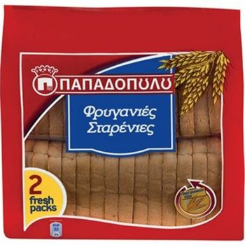 Φρυγανιές καλοψημένες, τραγανές σε εύχρηστη συσκευασία fresh pack.