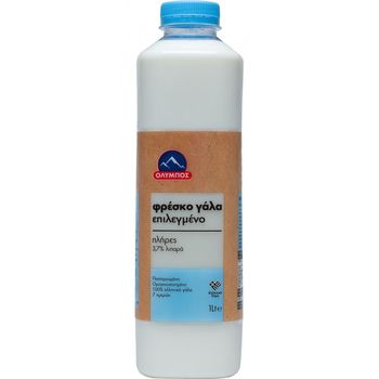 Το φρέσκο επιλεγμένο γάλα Όλυμπος με 3,5% λιπαρά, παράγεται από 100% ελληνικό φρέσκο γάλα.