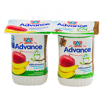 Συστατικά: Φρέσκο γάλα αγελάδος - αποβουτυρωμένο συμπυκνωμένο γάλα αγελάδος - ανθόγαλα - πρωτεΐνη γάλακτος 78.8%, φρουκτόζη, μήλο - μπανάνα 6%, εκχύλισμα σταφυλιού, άμυλο, γαλακτικός σίδηρος, μίγμα βιταμινών (Β6, νιασίνη, φολικό οξύ, C),αρωματικές ύλες, καλλιέργεια γιαούρτης. Λιπαρά 3,0%, ολικά στερεά 21,9%.