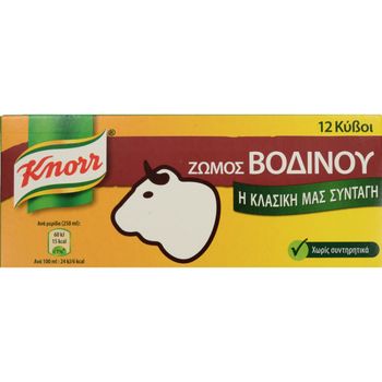 Ο Κύβος για βοδινό αναδεικνύει ιδανικά τα μαγειρευτά πιάτα και τις σούπες. Χαρίζει πλούσια γεύση στα πιάτα σας χάρη στα λαχανικά και μυρωδικά όπως κρεμμύδι & μαϊντανό που περιέχει. Ταιριάζει ιδανικά με τα αγαπημένα σας μαγειρευτά πιάτα και τις σούπες.