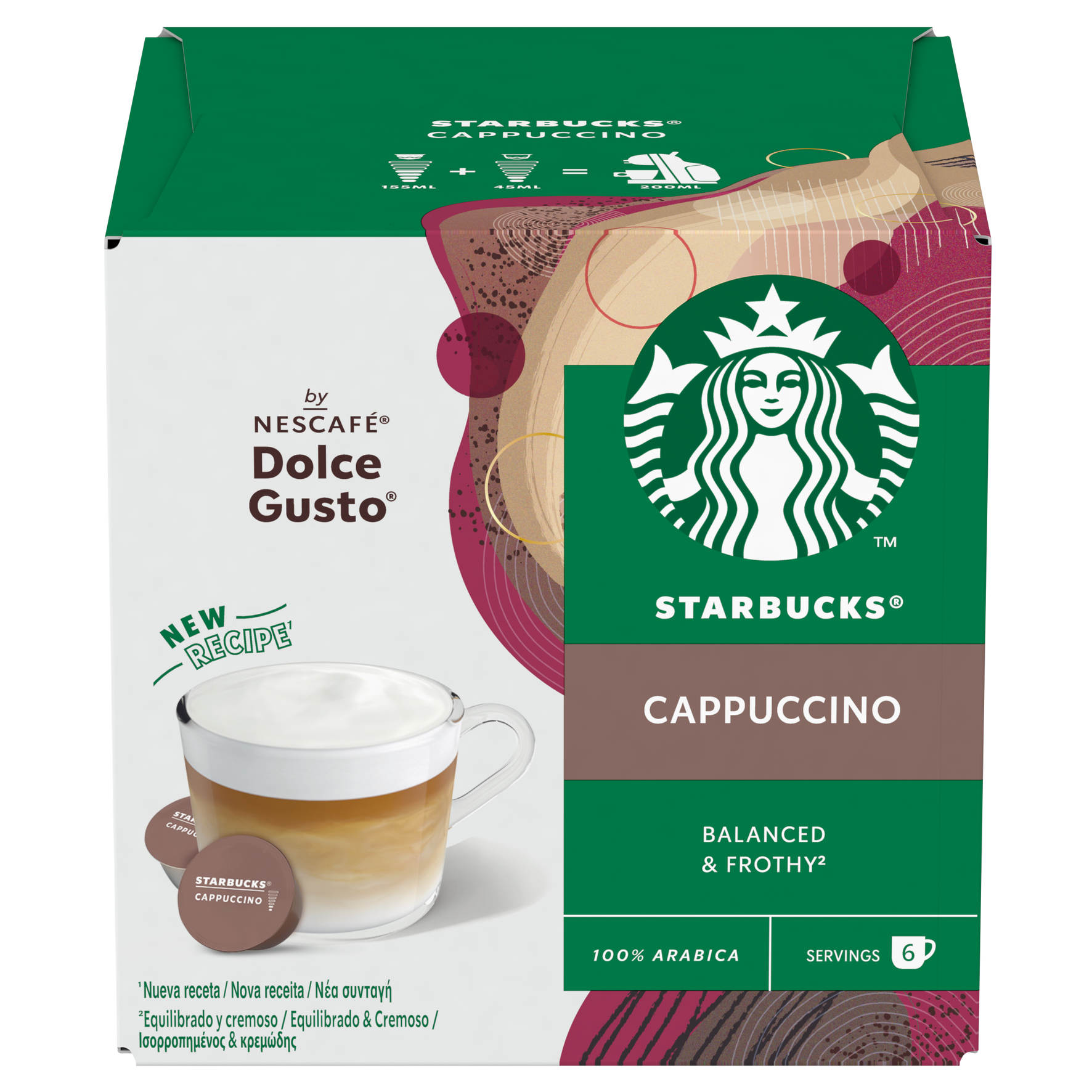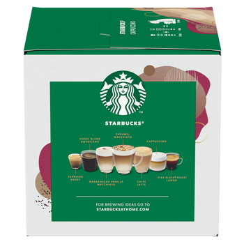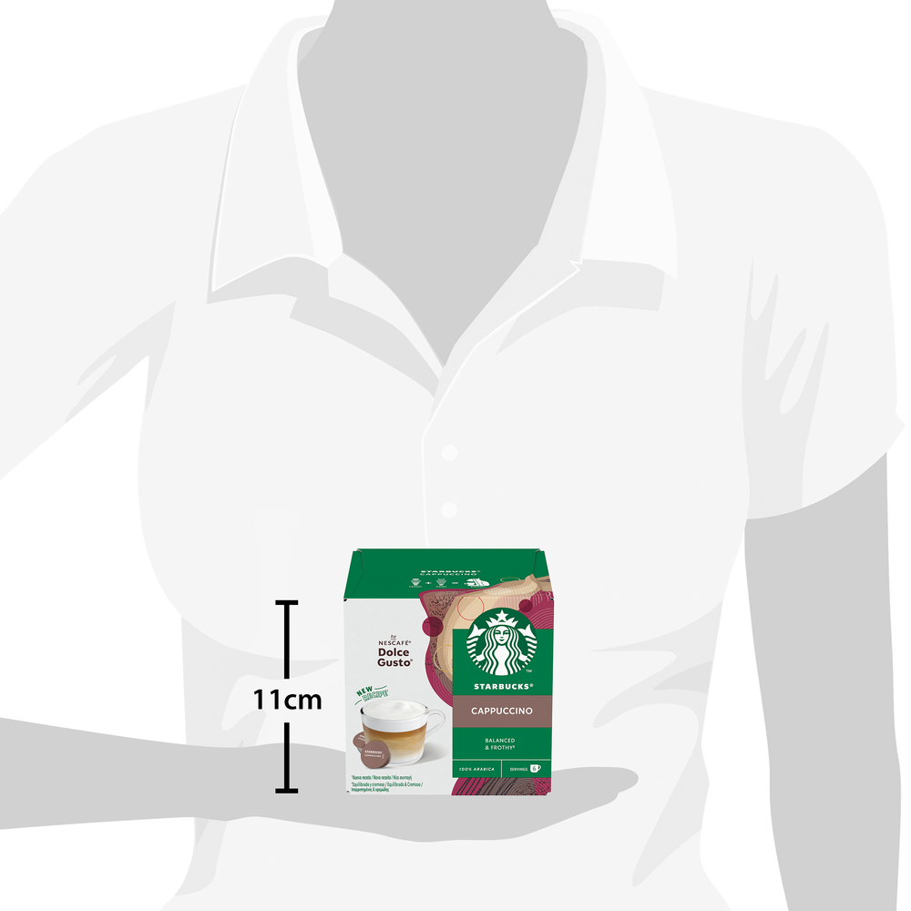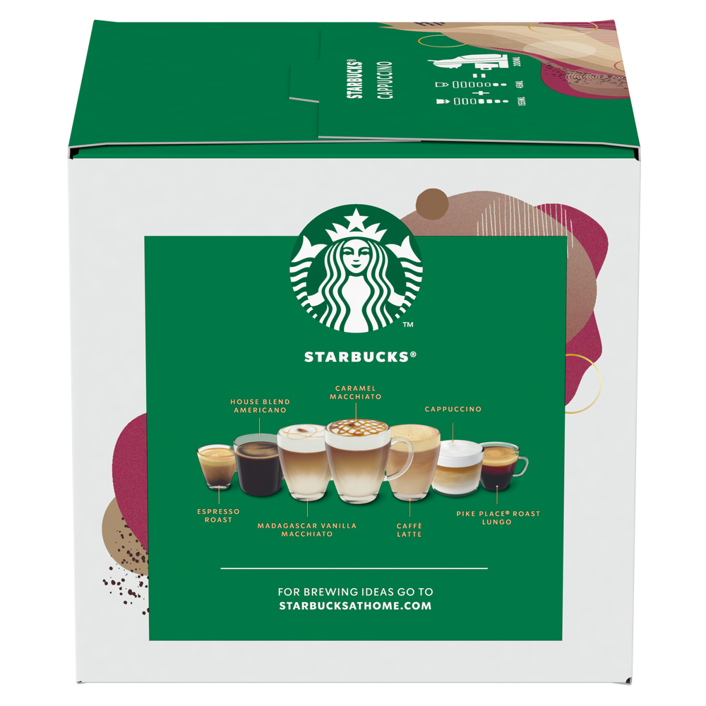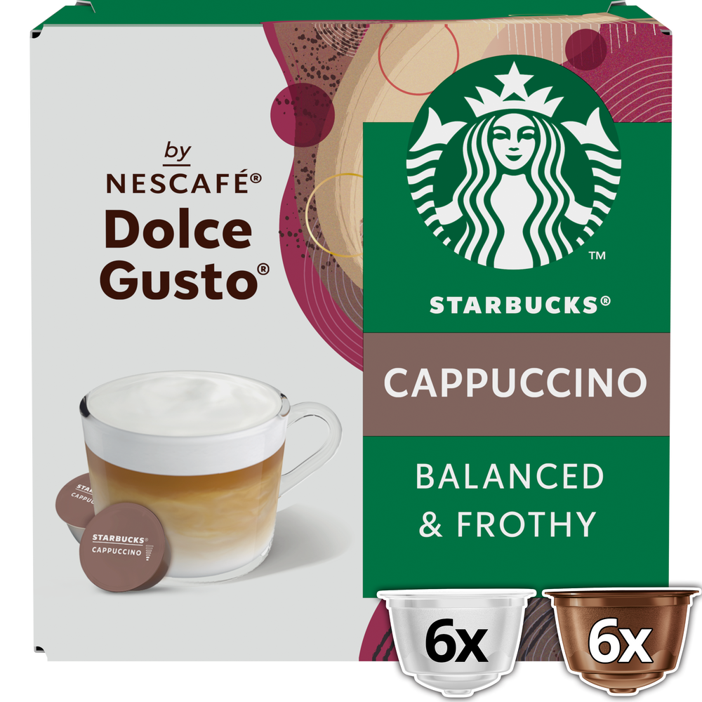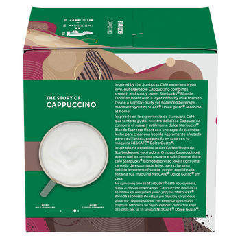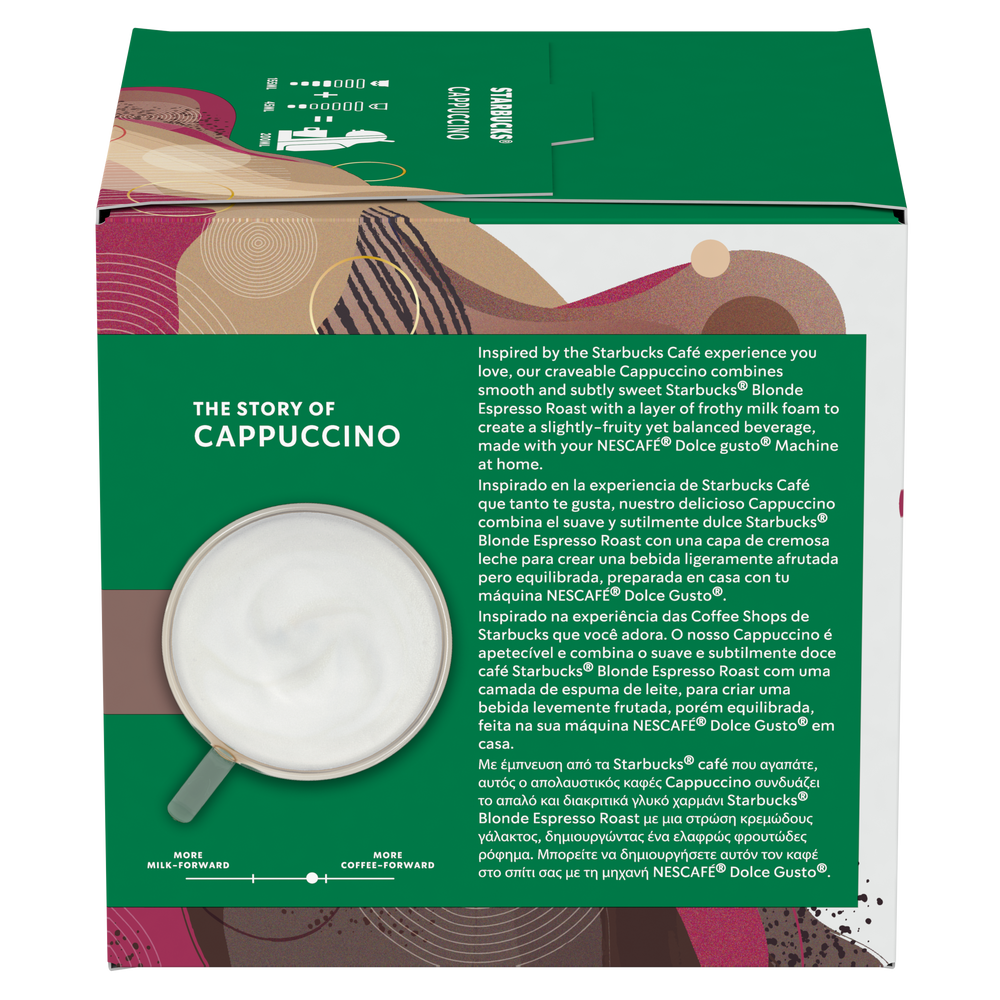 Με έμπνευση από το Cappuccino των Starbucks που αγαπάτε, με τη γνωστή ισορροπημένη, ήπια και απολαυστική γεύση. Mπορείτε να δημιουργήσετε αυτόν τον καφέ στο σπίτι σας, με τη μηχανή Nescafe Dolce Gusto.