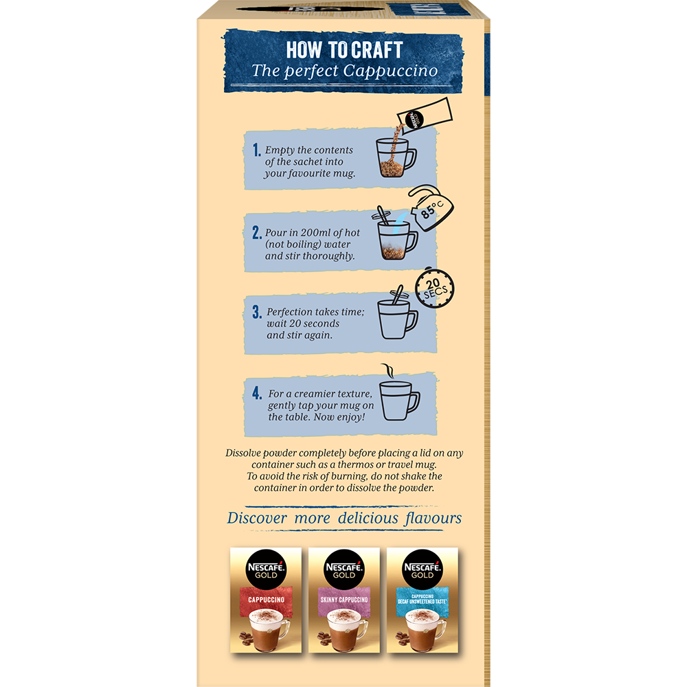 Θέλεις κάτι απαλό και μοναδικά απολαυστικό, με αισθησιακή γεύση και πλούσιο άρωμα; Η λύση είναι μία, Nescafe Gold Cappuccino Decaf… Μία πρωτόγνωρη γευστική εμπειρία ξετυλίγεται μπροστά σου, τόσο απλά, τώρα και χωρίς καφείνη!