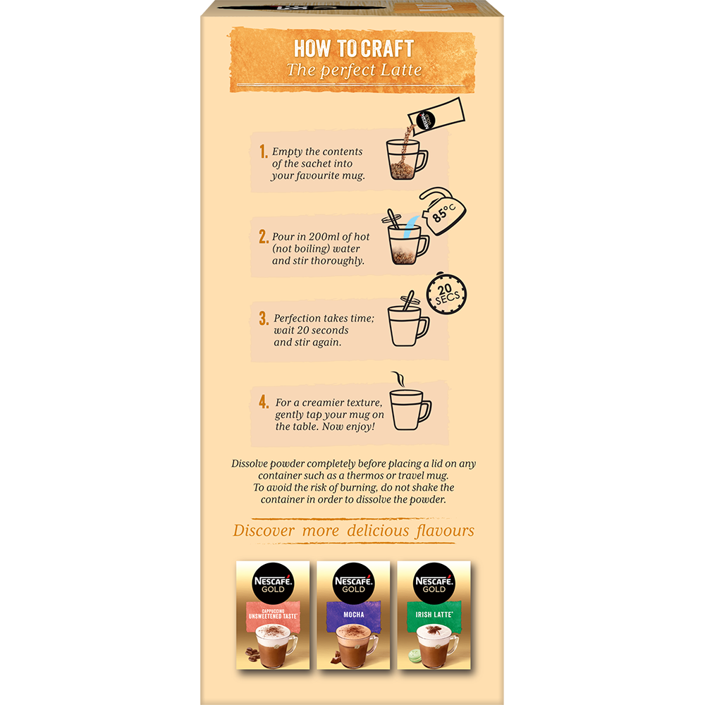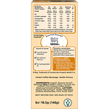 Εξαιρετική γεύση Vanilla Latte με βελούδινη κρέμα και πλούσιο άρωμα βανίλιας γεμίζουν κέφι το φλυτζάνι σου. Θέλεις κάτι απαλό και μοναδικά απολαυστικό, με αισθησιακή γεύση και πλούσιο άρωμα; Η λύση είναι μία, Nescafe Gold Vanilla Latte... Μία πρωτόγνωρη γευστική εμπειρία ξετυλίγεται μπροστά σου, τόσο απλά!