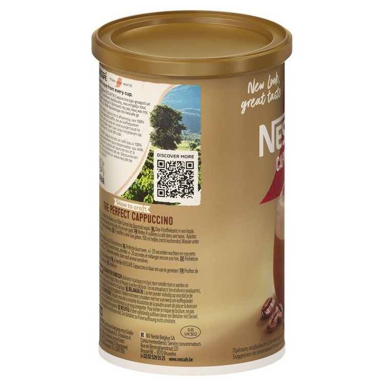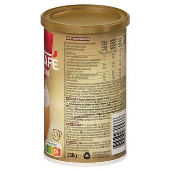 Ανακαλύψτε τον NESCAFE® GOLD Cappuccino! Ένα αρμονικά καβουρδισμένο χαρμάνι καφέδων Arabica και Robusta με λεπτοαλεσμένους κόκους καφέ, μέστο σώμα, βελούδινη κρέμα, και απολαυστική γεύση. Ένας καραμελένιος πειρασμός στο φλιτζάνι σου με πλούσια κρέμα και μοναδικό άρωμα σε έναν καφέ που απογειώνει τις αισθήσεις. Με την ποσότητα της συσκευασίας μπορείτε να φτιάξετε 17-20 μερίδες. Ανακαλύψτε τον νέο NESCAFE GOLD Cappuccino. Ένας συνδυασμός από προσεκτικά συστατικά φυσικής προέλευσης*. Το μυστικό κρύβεται στον συνδυασμό κόκκων ποικιλίας Arabica καλλιεργημένων σε μεγάλο υψόμετρο και κόκκων ποικιλίας Robusta που δίνουν πλούσια και μεστή γεύση στο ρόφημα, ενώ το πλούσιο σε γεύση γάλα προσδίδει βελούδινη κρέμα, δημιουργώντας μια μοναδική εμπειρία καφέ. Μείγμα για στιγμιαίο ρόφημα Cappuccino. Θέλεις κάτι απαλό και μοναδικά απολαυστικό, με αισθησιακή γεύση και πλούσιο άρωμα; Η λύση είναι μία, NESCAFE® GOLD CAPPUCCINO… Μία πρωτόγνωρη γευστική εμπειρία ξετυλίγεται μπροστά σου, τόσο απλά! Ένας γευστικός συνδυασμός με συστατικά φυσικής προέλευσης*. Διατηρείται σε μέρος δροσερό και ξηρό.