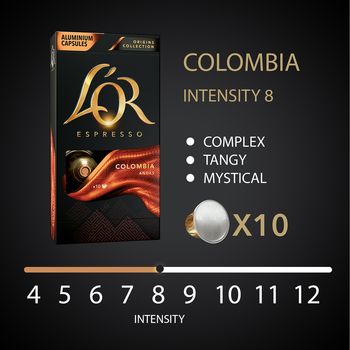 Η πλούσια βλάστηση των τοπίων της Κολομβίας και ο θρύλος του Ελ Ντοράντο αποτελούν την έμπνευση του COLOMBIA, ενός espresso με γεμάτο σώμα, πολυδιάστατο και αψύ χαρακτήρα που αφήνει το στίγμα του. O L’OR Colombia είναι το μυστηριώδες μεγαλείο που γίνεται αφορμή για εξερεύνηση και αναζήτηση ορισμένων από τους πιο εκλεκτούς κόκκους Arabica στον κόσμο.