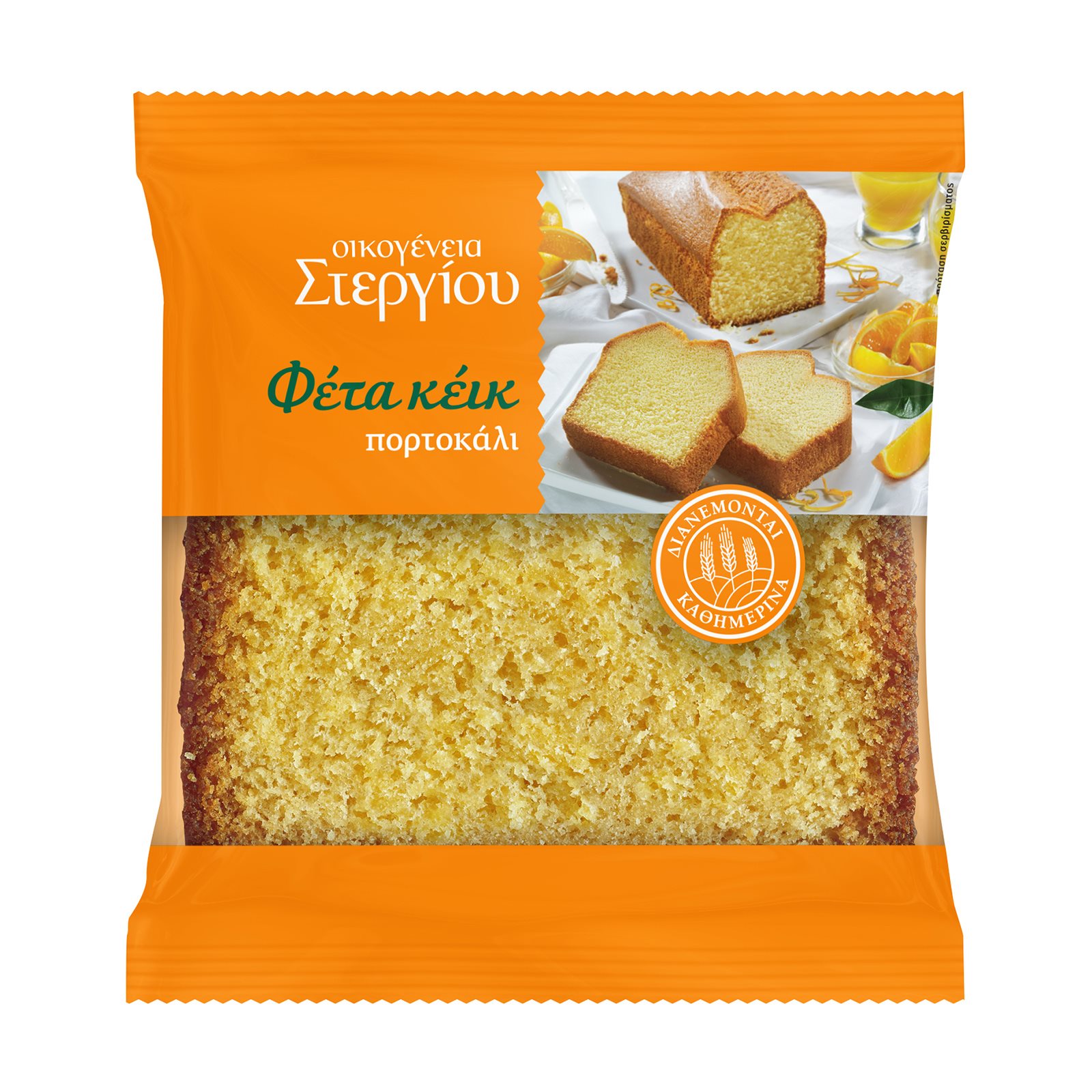 Αφράτη φέτα κέικ πορτοκαλιού που παράγεται με φροντίδα και αγάπη για εσάς.