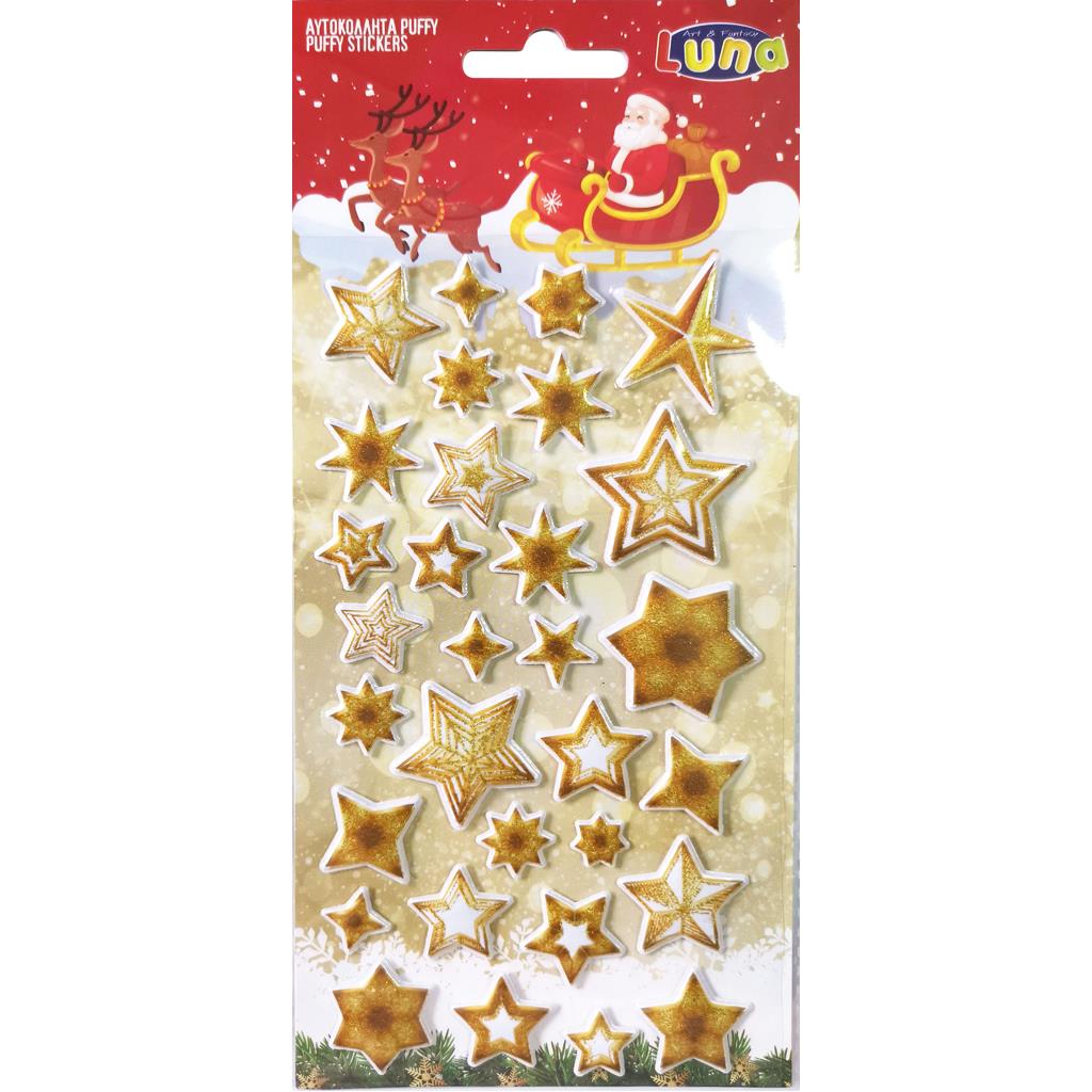 Χριστουγεννιάτικα Διακοσμητικά Αυτοκόλλητα Puffy Glitter Luna ιδανικά για να διακοσμήσουν και να δημιουργήσουν την πιο γιορτινή χριστουγεννιάτικη ατμόσφαιρα που θα εντυπωσιάσουν! Διαστάσεις σελίδας 10x22 εκ