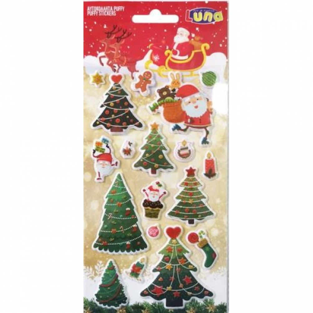 Χριστουγεννιάτικα Διακοσμητικά Αυτοκόλλητα Puffy Glitter Luna ιδανικά για να διακοσμήσουν και να δημιουργήσουν την πιο γιορτινή χριστουγεννιάτικη ατμόσφαιρα που θα εντυπωσιάσουν! Διαστάσεις σελίδας 10x22 εκ