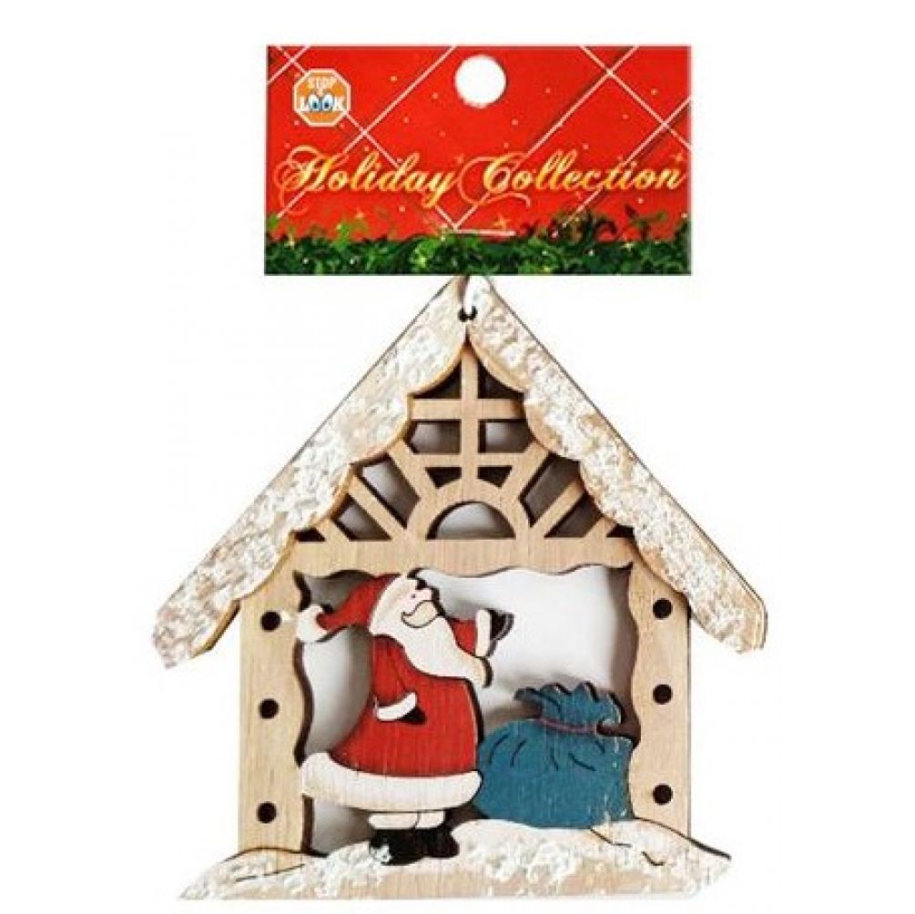 Στολίδι Ξύλινο Χριστουγεννιάτικο Σπιτάκι με Άγιο Βασίλη 9.5εκ