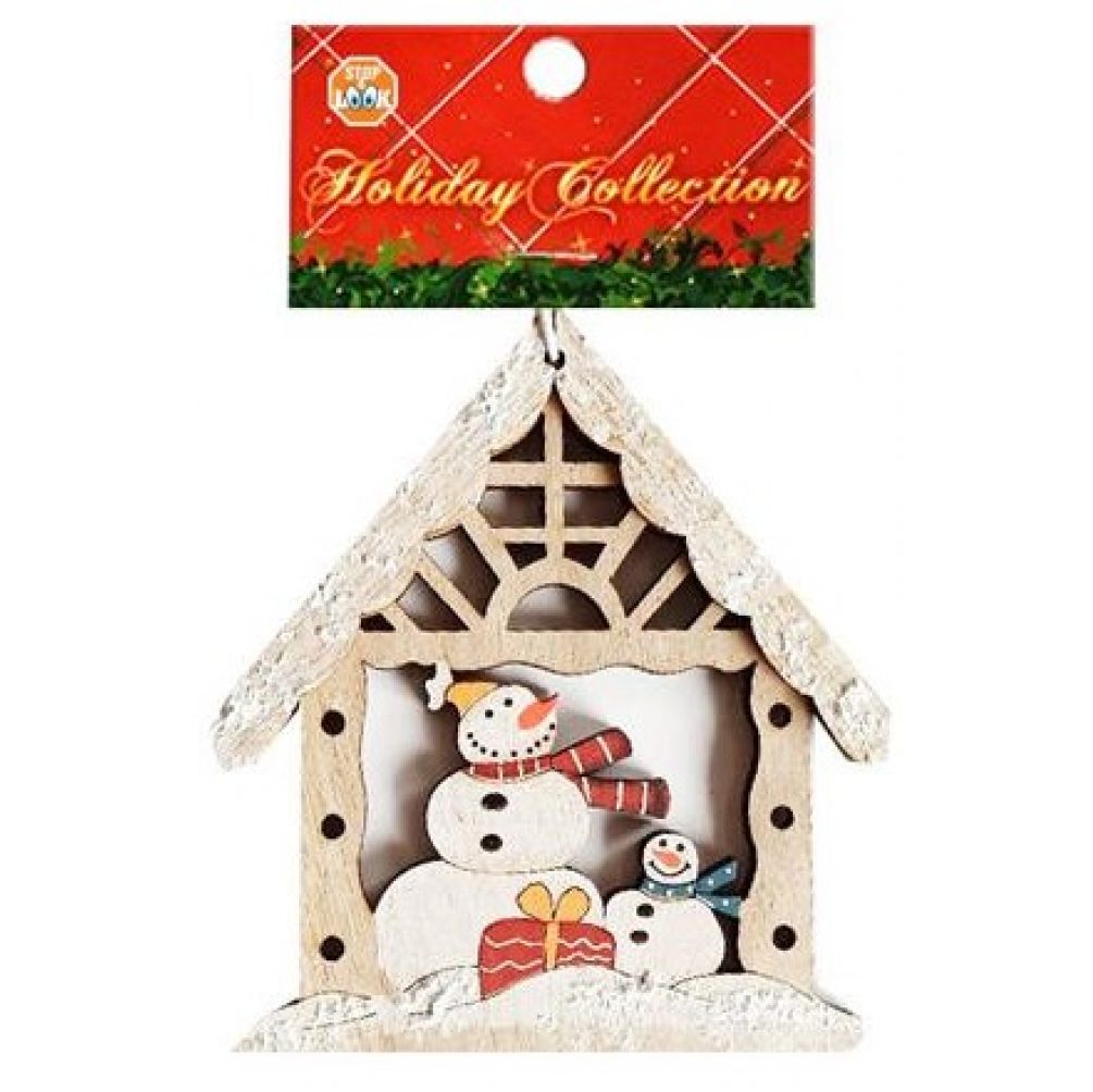 Στολίδι Ξύλινο Χριστουγεννιάτικο Σπιτάκι με Χιονάνθρωπο 9.5εκ